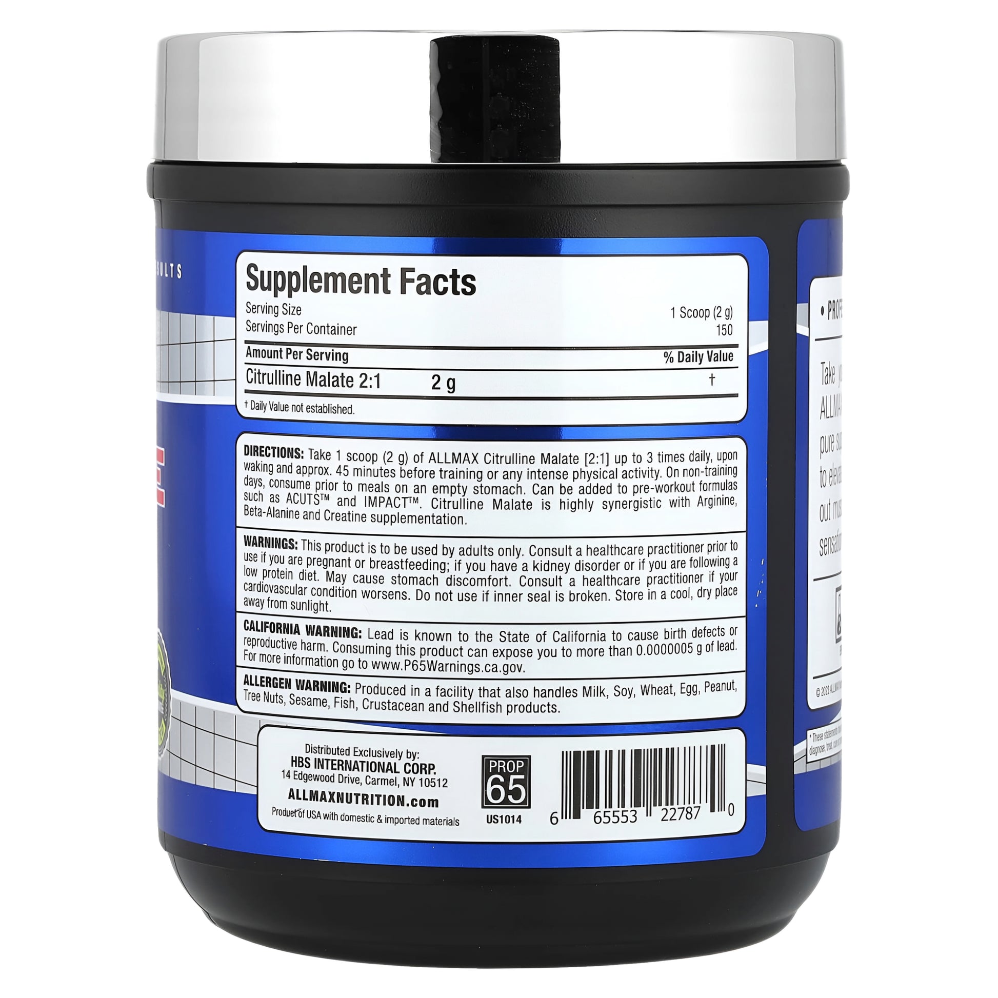 Take 1 scoop (2 g) of ALLMAX Citrulline Malate [2:1] up to 3 times daily, upon waking and approx. 45 minutes before training or any intense physical activity.