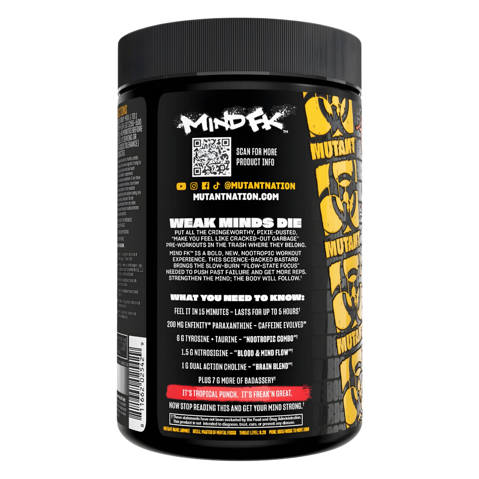 MUTANT® MIND FK™️ is a bold, new, nootropic workout experience. This science-backed bastard brings the slow-burn “flow-state focus” needed to push past failure and get more reps.